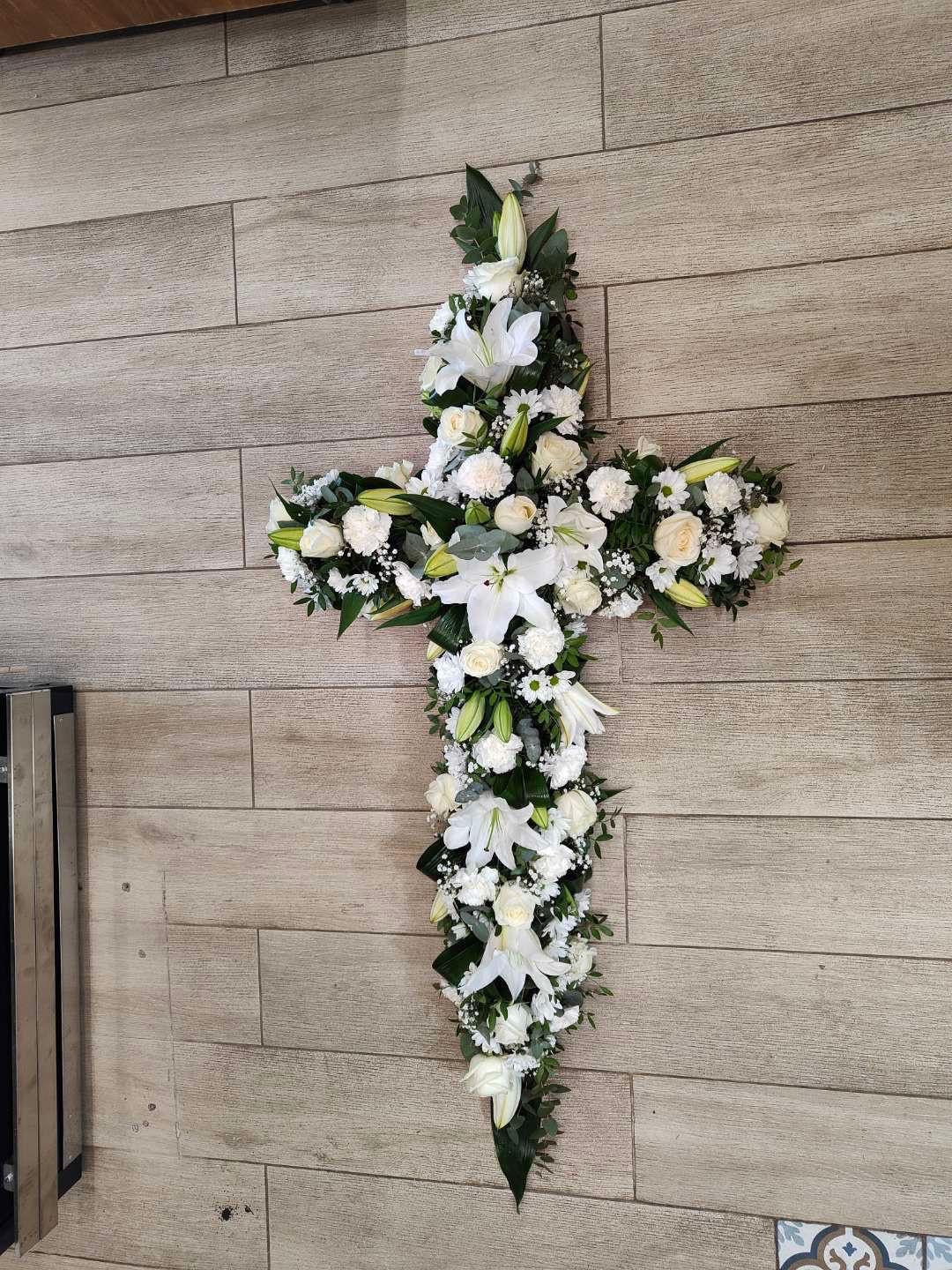 Ce mélange harmonieux de fleurs et de couleurs offre un homme floral raffiné et émouvant, idéal pour exprimer respect, affection et souvenir sur la sépulture d'un être cher.