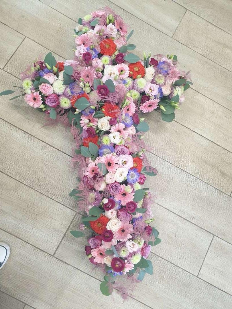 Composition florale enterrement traditionnelle Rosé du Matin